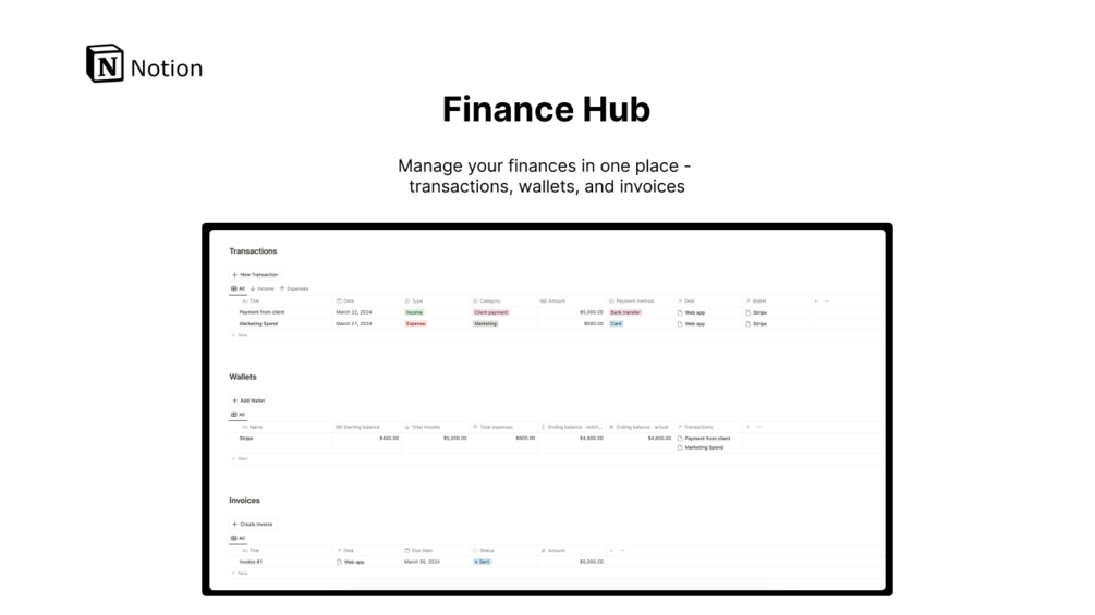 Financial Clarity: Gain valuable insights into your finances with transaction tracking, wallets, and invoice management