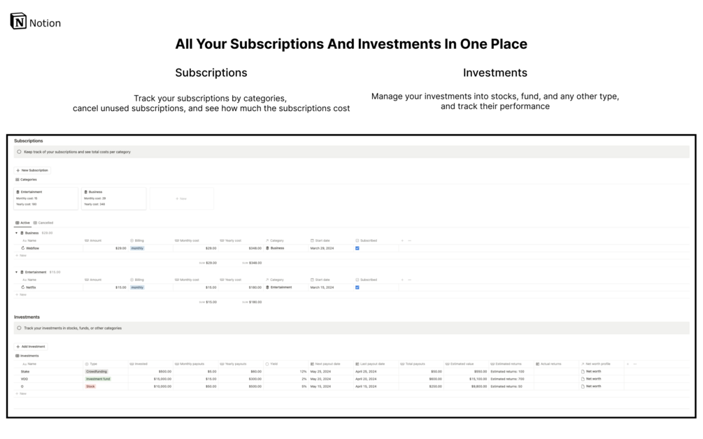 The Ultimate Finance Tracker Notion Template is designed to help you make smarter financial decisions and stay in control of your finances.